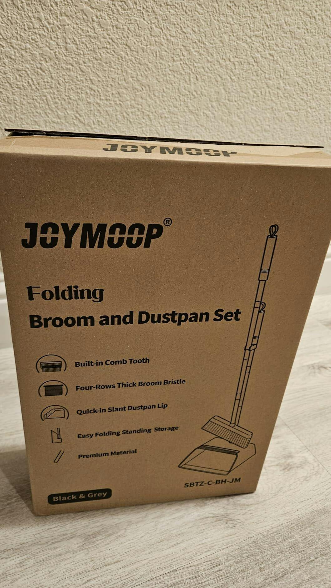 JOYMOOP Black Broom with Dustpan Combo Set, Upright Stand Up Broom with Built-in Comb Teeth, Angle Broom for Home Kitchen Office Lobby, Pet Hair and Hardwood Floor Sweeping